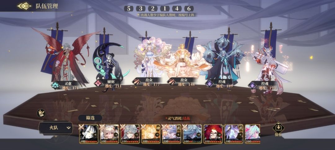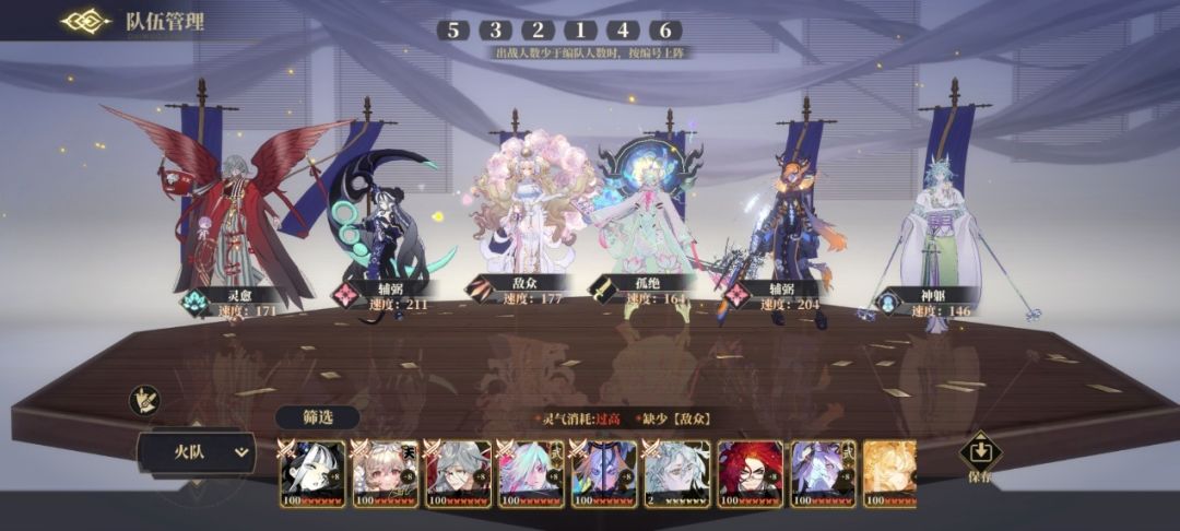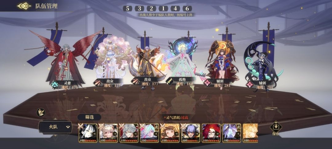 核心输出C位:九尾狐、祝融。依靠羲和附加多层灼烧印记,结算造成大量间接伤害同时又能补充祝融的「炎盾」,魃保证我方不受控制同时提供增伤减伤效果。三耀提供续航,携带夕保证队伍充足的灵气供给。