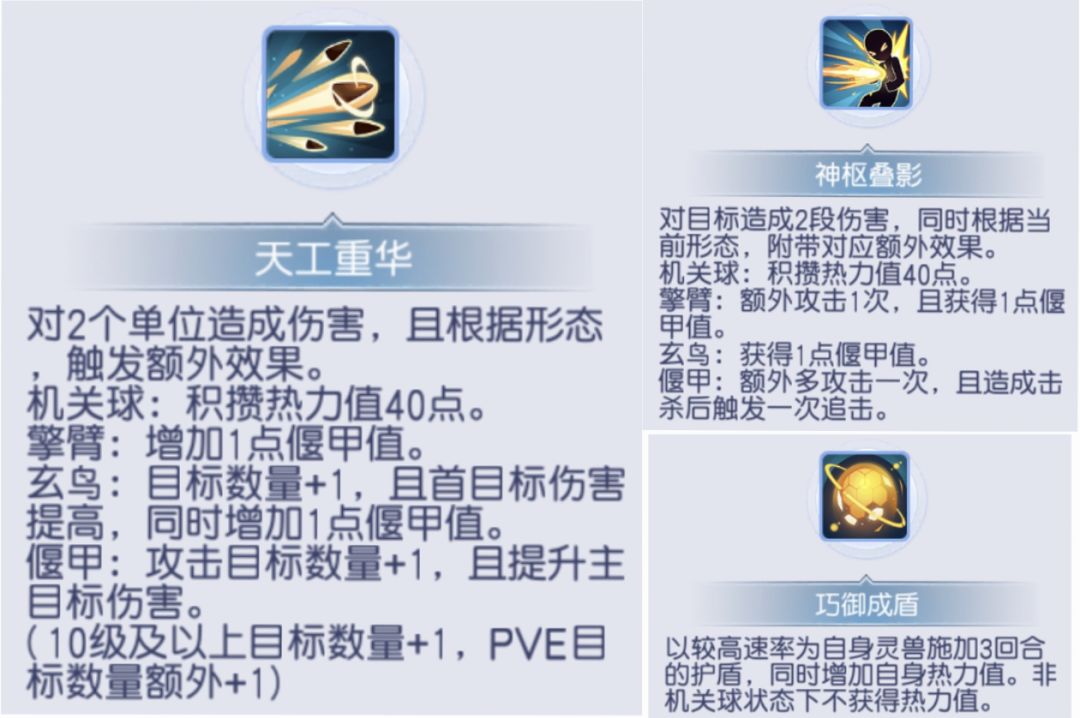对应特色技能:机偃-玄鸟(可以看作是天工重华的进阶技能)