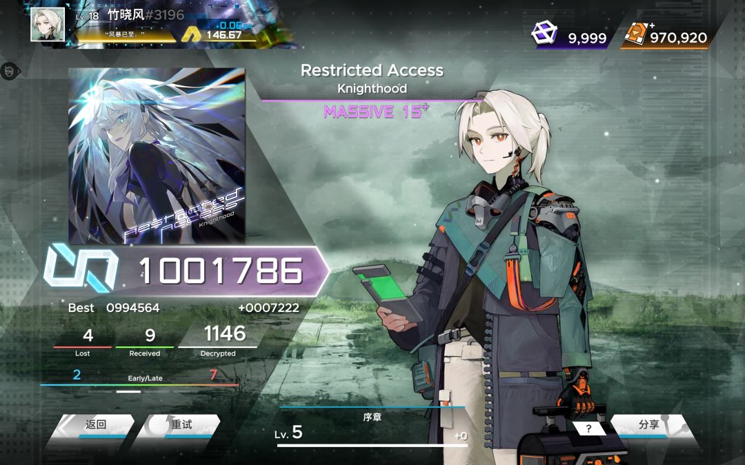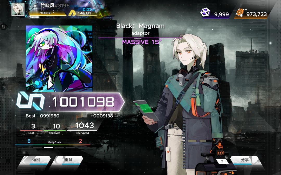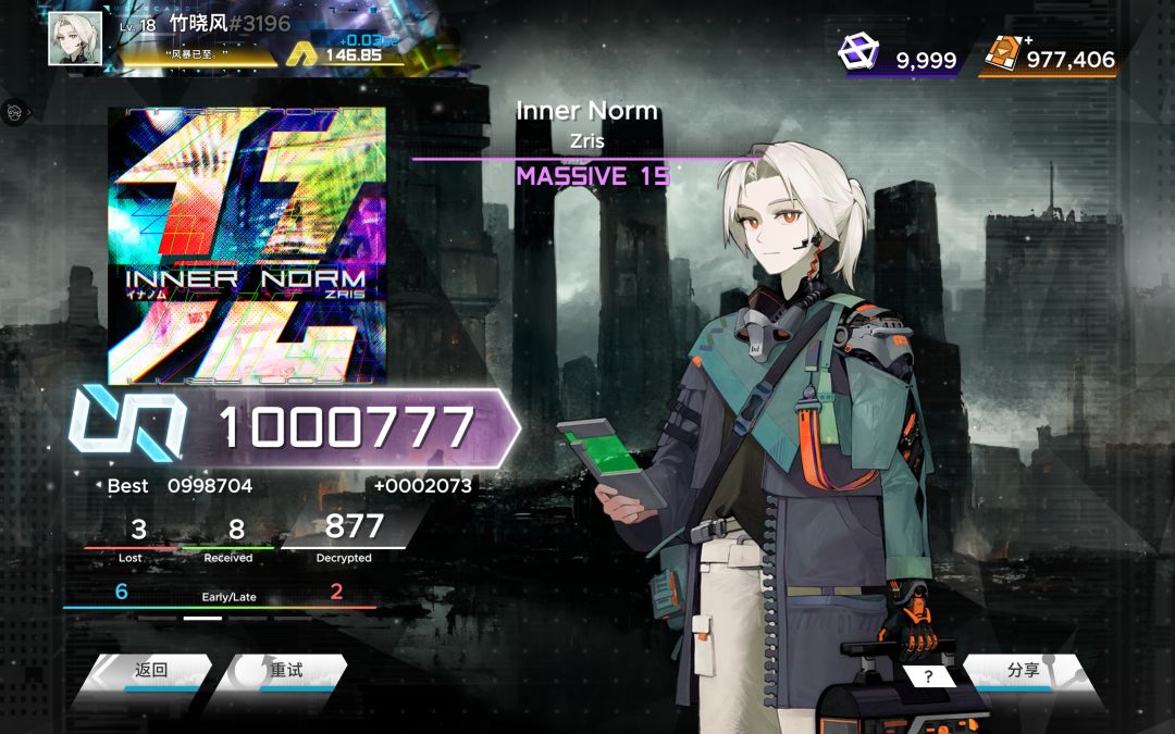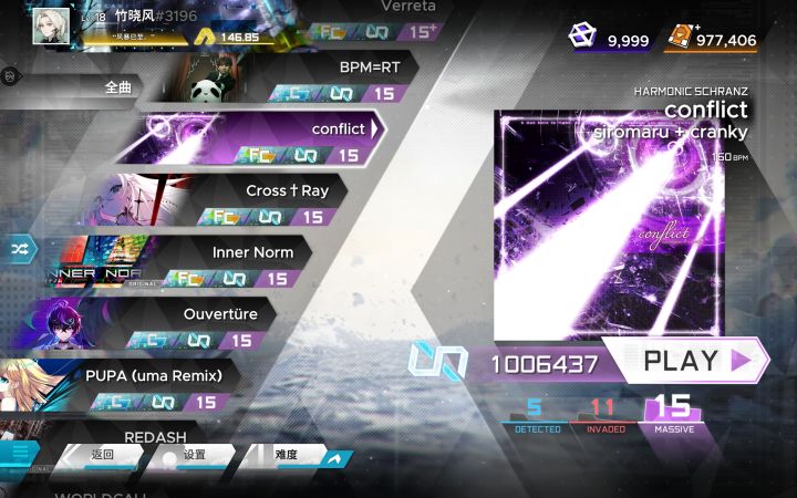 /但真正恶心的15级谱面还是Inner Norm,那段死亡交互是真的很难读,一堆INF评里就它一个AAA+😡,关键是死活推不动,要么漏三四个,要么爆一堆Received😨,而今天把它给打到∞评后,我大概就不会再推它了!😡😡😡