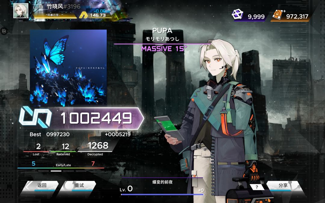 /最近感觉玩范式能渐渐读懂谱了,然后经过玩其他音游的底力积累,时隔一个月再去打这样的15+曲目就轻松多了,其中典例就是MSV15+的PUPA了(曾经打着打着就累了,交互、位移、读谱与耐力的综合考验使我手指旋转😰)