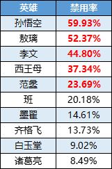 【禁用率前五】孙悟空、敖璃、李文、西王母、范蠡