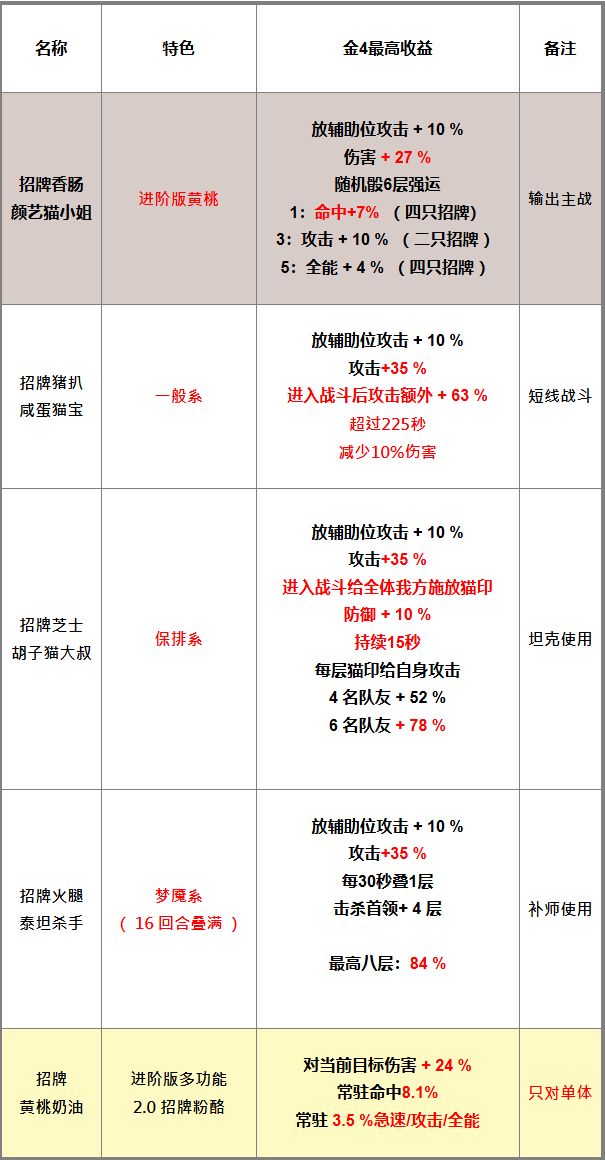 加成数值一览(金4)