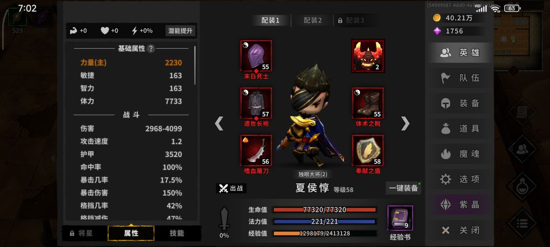 这阵容配置算低的吧 ,马超不需要秒怒暴击也不需要技能配置5个大招1个护盾,祝融技能1大招2个回怒,火庞统技能5个大招1个2技能,夏侯全大招,黄忠全大招装备就朝无限黄忠做,我的黄忠还没做好。看我的魔魂就知道都是垃圾,好时9天算慢的了,主要是不会玩浪费了很多金币,要是早点做无限黄忠就早过了,说下要买什么,有买庞统和祝融的钻石就先买,没那么多钻石就买个诸葛过度,再买马超和黄忠,