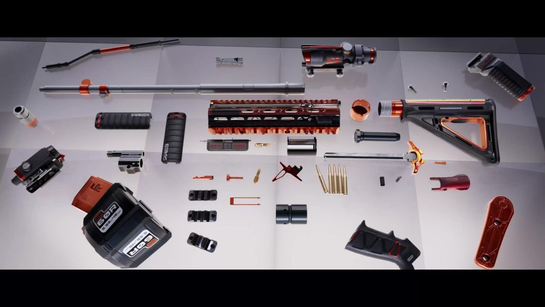枪械经喷漆勾勒,富有科技感的光影效果让其仿佛被能量环绕。