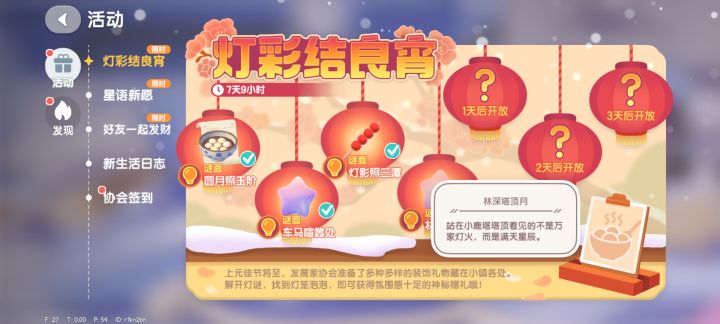 今天的灯彩结良宵元宵气泡(第5天,一共是7天的)在温泉山那的石崖山的一个类似寺庙那里~奖励是30个月光水晶,请发展家们赶紧上线去拿吧~
