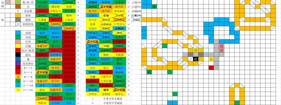 2、所有增益类建筑都至少有一个有路可达,所有减益类建筑都不会被使用,同时周围必定有一格以上道路相接;即全程居民属性不会降低;