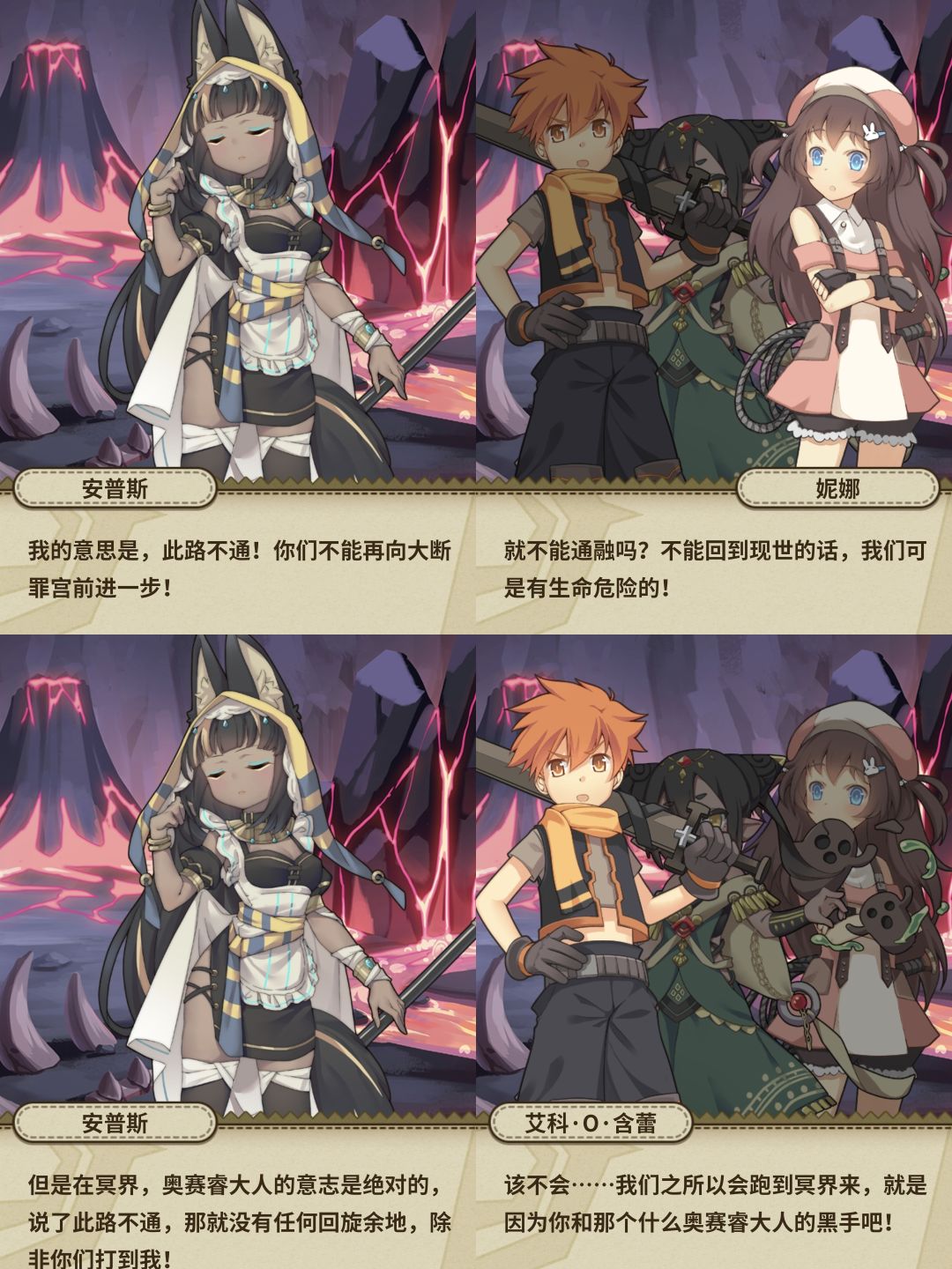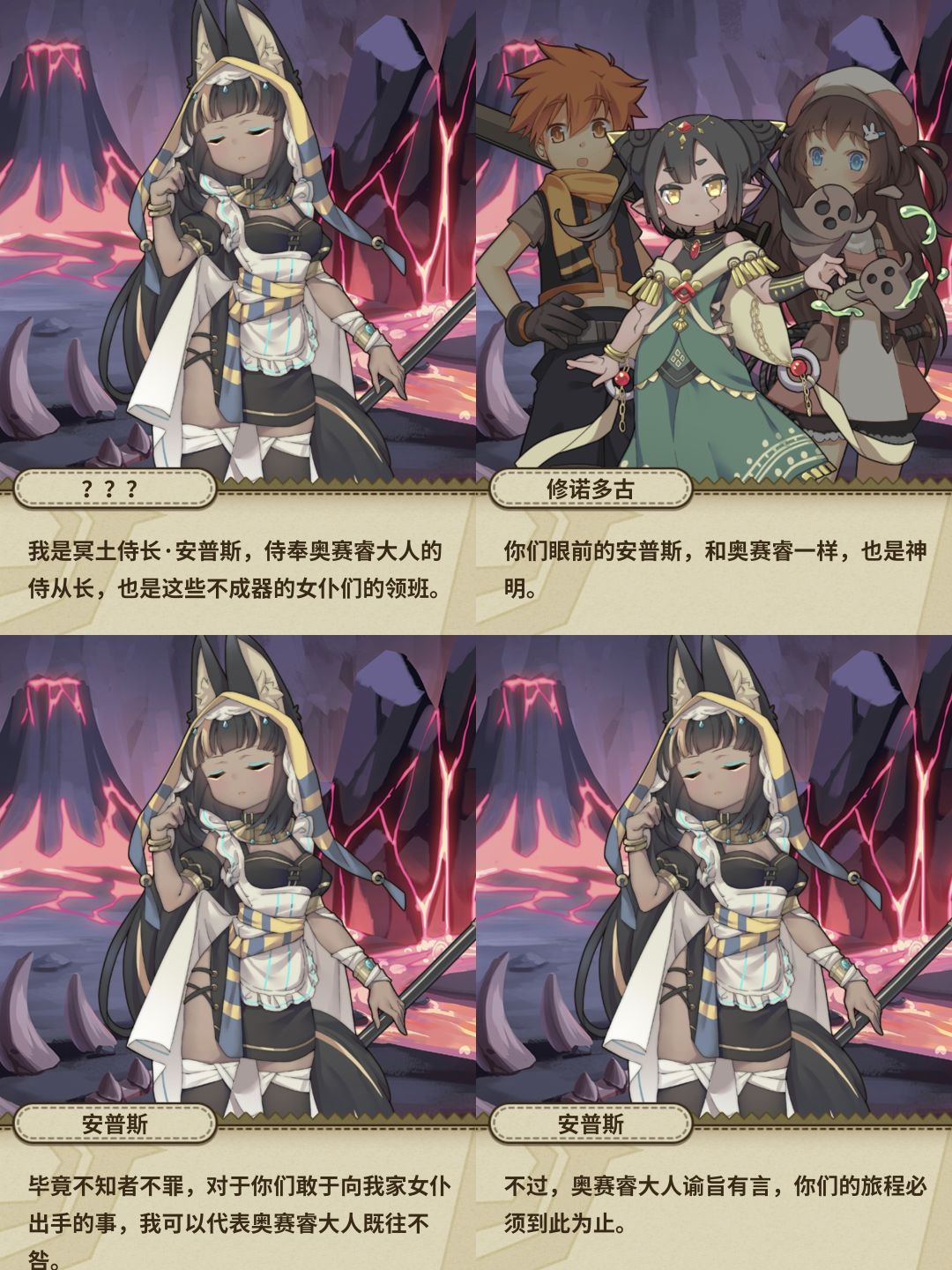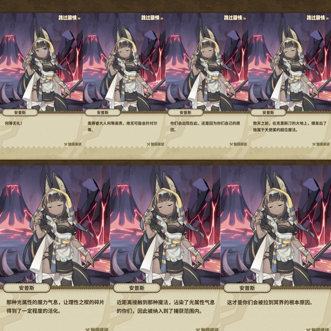 路上我们遇到了另一位神明,女仆长安普斯,在冥界里,所有的土偶都是冥主的仆人,安普斯认为我们路上攻击拦路土偶的行为是打狗不看主人脸,说什么不知者无罪,但是路途不能继续下去了![[TapFamily_震惊]](https://img.tapimg.com/market/images/31eb1c54f9721041535070a32e5f9d8e.gif)