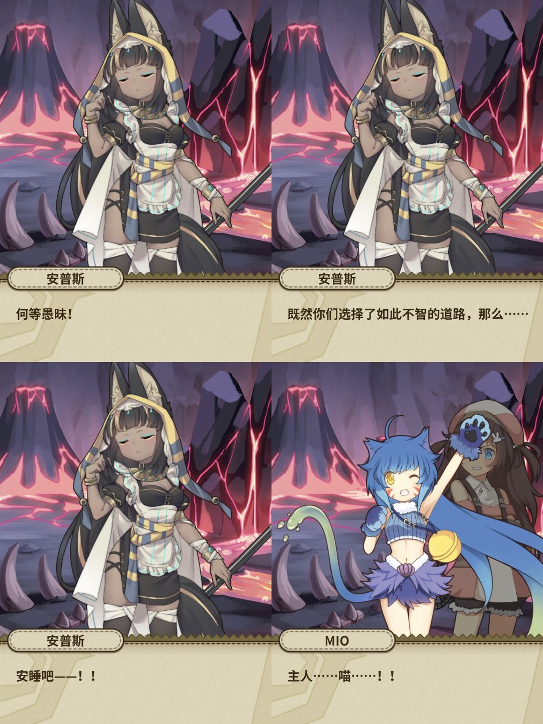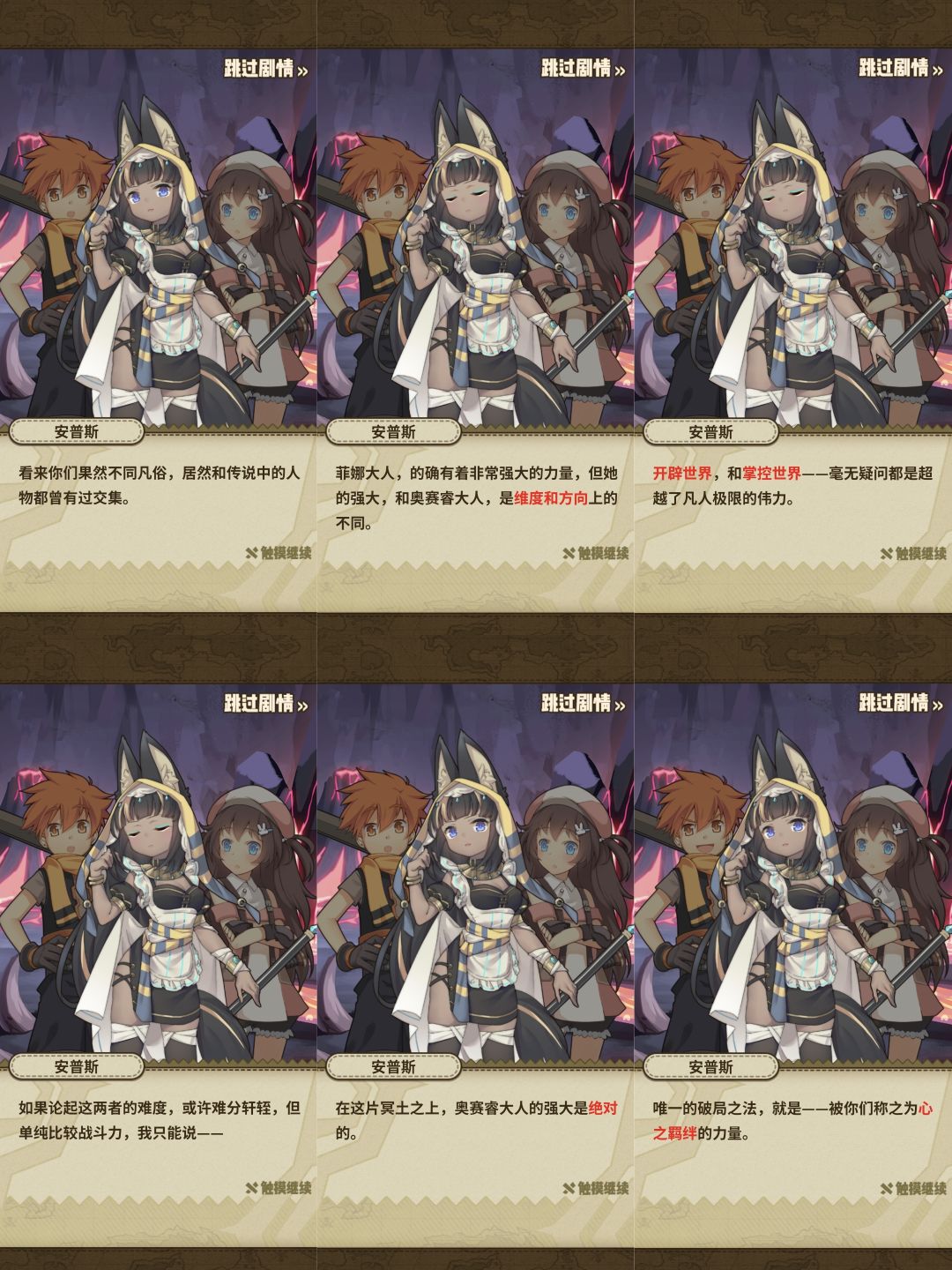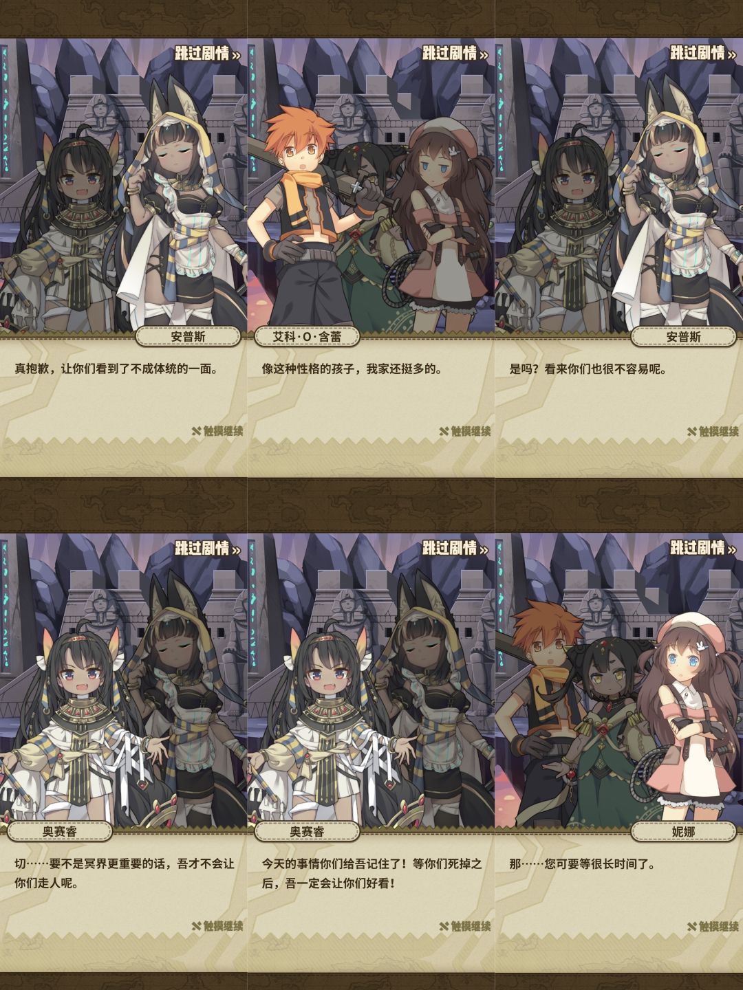 路上我们遇到了另一位神明,女仆长安普斯,在冥界里,所有的土偶都是冥主的仆人,安普斯认为我们路上攻击拦路土偶的行为是打狗不看主人脸,说什么不知者无罪,但是路途不能继续下去了![[TapFamily_震惊]](https://img.tapimg.com/market/images/31eb1c54f9721041535070a32e5f9d8e.gif)