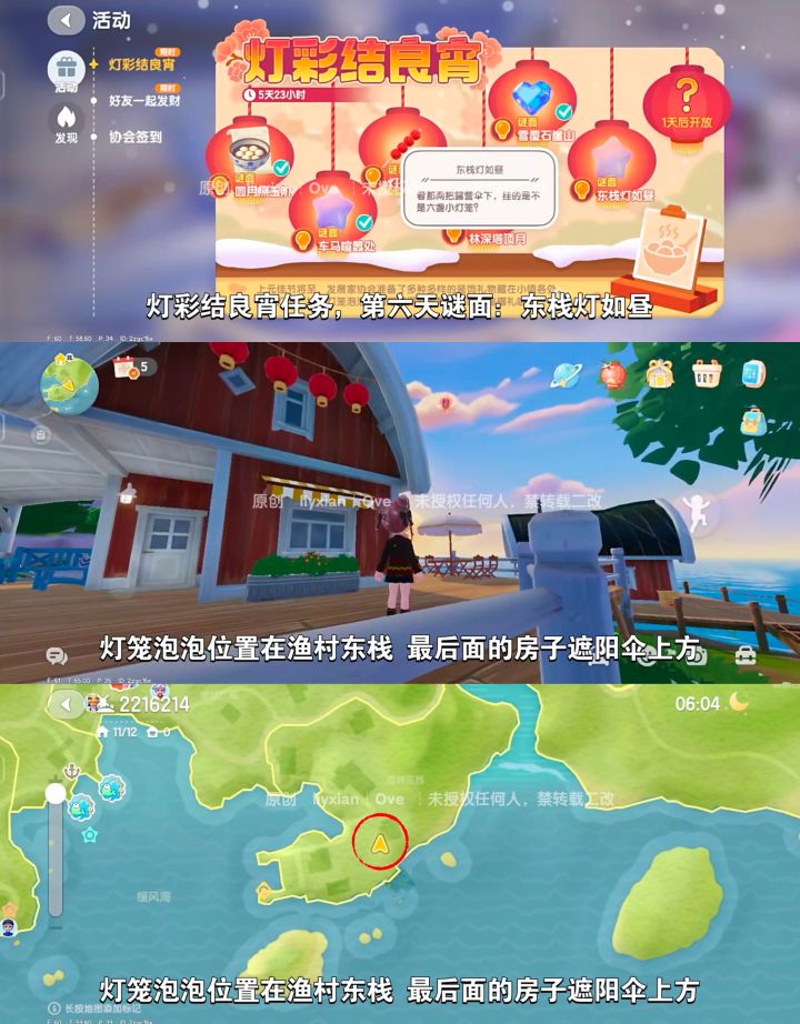 第六天谜面:东栈灯如昼,找到泡泡可获得15个满愿星。