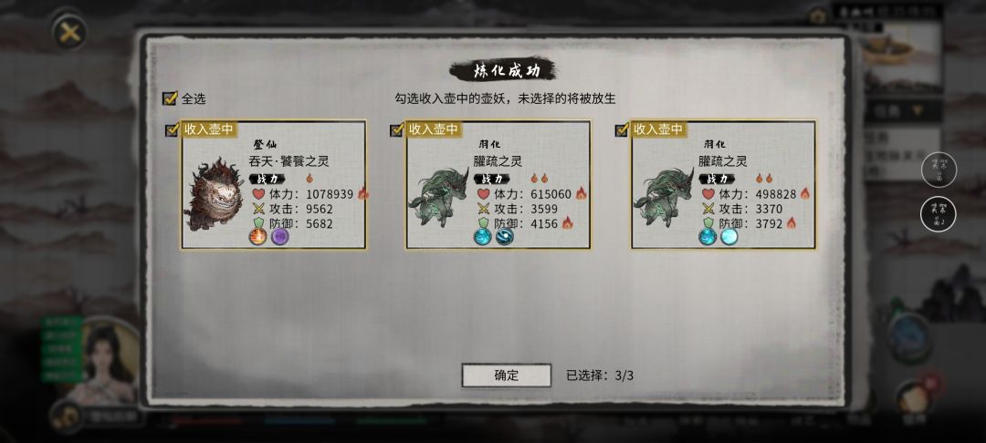 第五步,一直刮他刮到大概1/3血左右,他就会变形态了,变成小马,这个时间抓紧吸收了,一直点吸收(不是长按)可以多拿两三个小马以及概率随机收其他赤幽的大妖怪,包括但不限于类,环狗,铮