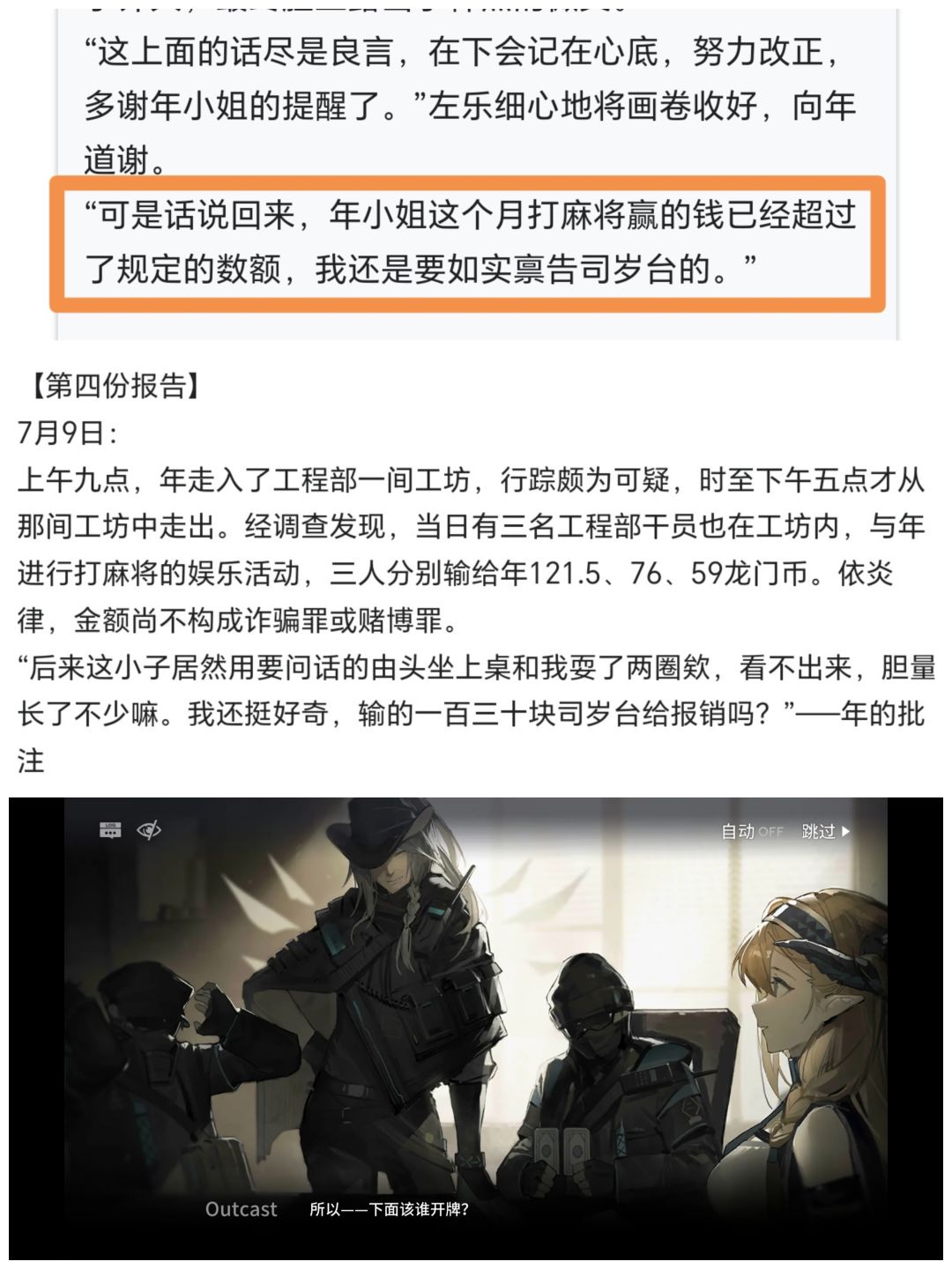 负责年的冰主任是左乐,从他的报告可以看出,左公子非常敬业,连年聚众打麻将和打麻将赢的钱都要记录下来,甚至不惜得亲自下场搓两圈探探年的虚实,可见大炎的国粹影响力之深。