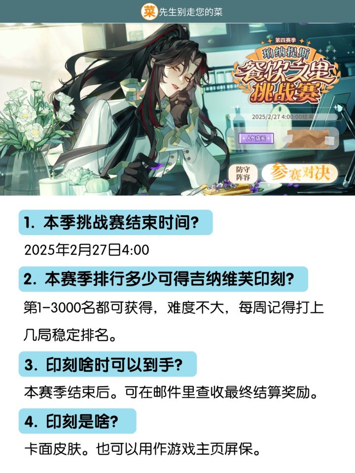 【活动攻略】挑战赛 吉纳维芙印刻必拿下!