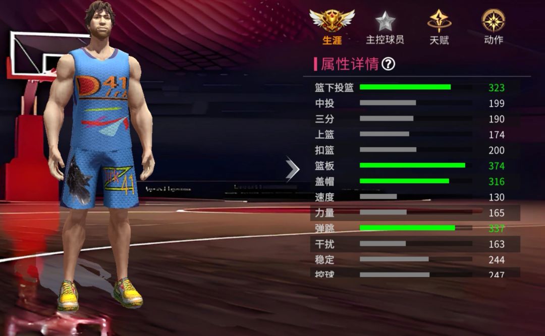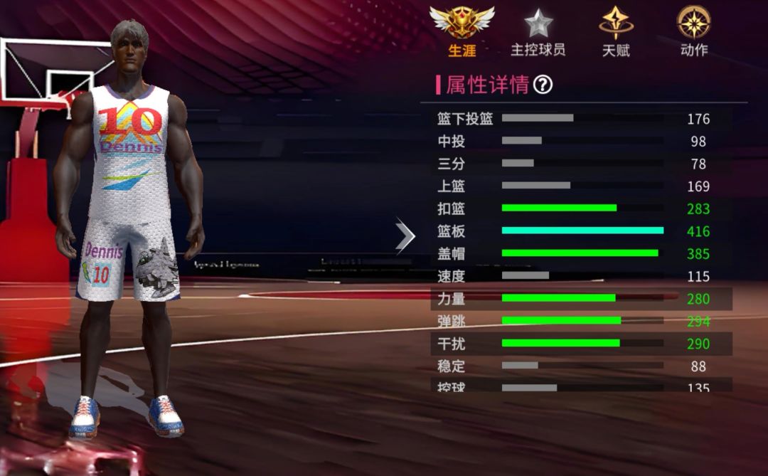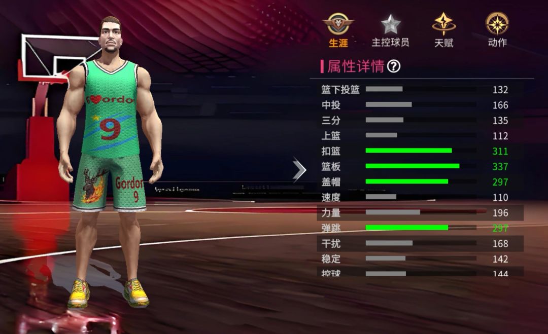 篮板数值:主要影响篮板高度,篮板起跳速度,少量影响篮板范围。
