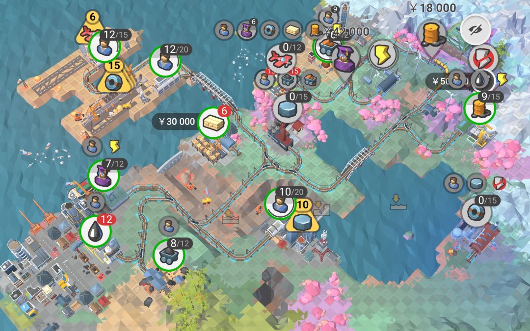 - 8期:购买发电站,建设桥梁链接煤矿、AB小镇