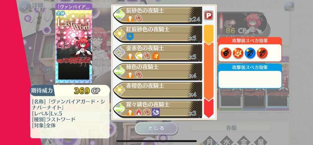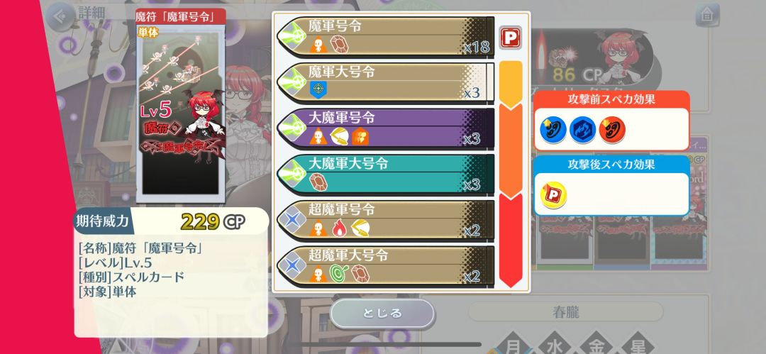 特攻:16段,妖怪、人类、异变解决者、红魔馆、巫女、魔法使,6段加上幻想乡,
