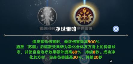 苏醒:持续期间,造成雷电伤害能回血,0.5s/次/5%攻击力的奶;