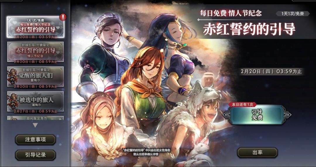 2、情人节纪念限时阶梯引导:新增限时阶梯引导“赤红誓约的引导”,最多可进行3轮引导。