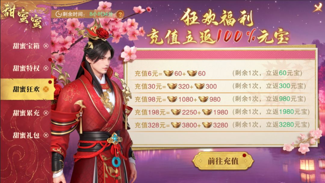 4. 甜蜜狂欢:充值返利,元宝翻倍!