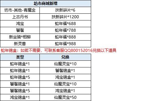 说明:①蛇年福作用:保底888个饕餮精华可在坊市进行兑换新坐骑*相柳,避免出现运气差的道友;同时还可以兑换新灵兽、坐骑*鸿宝