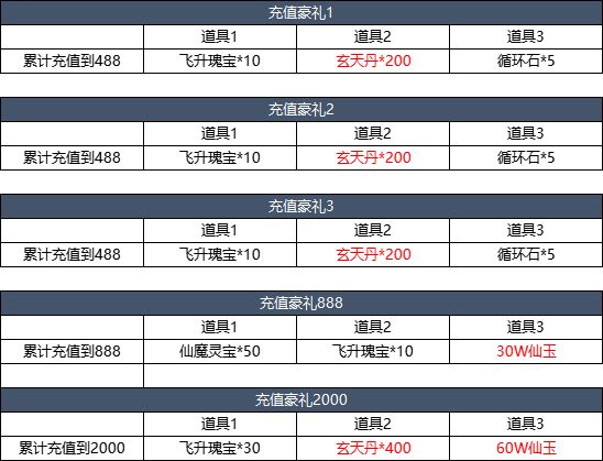 【活动简介】活动期间累计充值达到指定金额即可领取惊喜礼包!