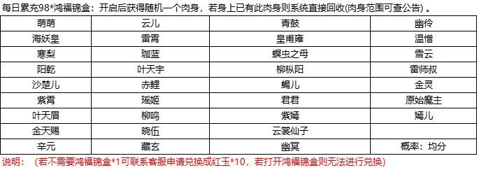 ①、888充值豪礼:活动期间内如不需要道具3:可联系客服兑换《仙魔灵宝*50》、雷师叔、紫妍、欧阳倩、冉遗鱼、蓝思、明王诀、煞魂术、虚静修真功、八孔单异能胚子其中1个。