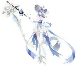 她穿着由冰晶点缀的礼裙,绒绒的袖口,象征着冬日中的暖意,优雅的礼帽间,跃动着黑白相间的琴键。白色让人们想起曼舞的飞雪,蓝色是人们印象中结冰的湖面。她拿着指挥棒,挥舞着,在空中勾勒出流动的曲谱,冬日的乐章在她的指挥下,仿佛浑然天成。