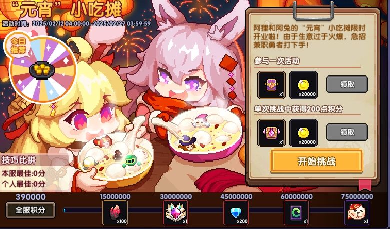2.每次完成元宵制作挑战,都可累积全服积分,达到相应分数后即可解锁“魔神石-戎姒”、“魂卡重置券”、“时装-汤圆小二”等奖励