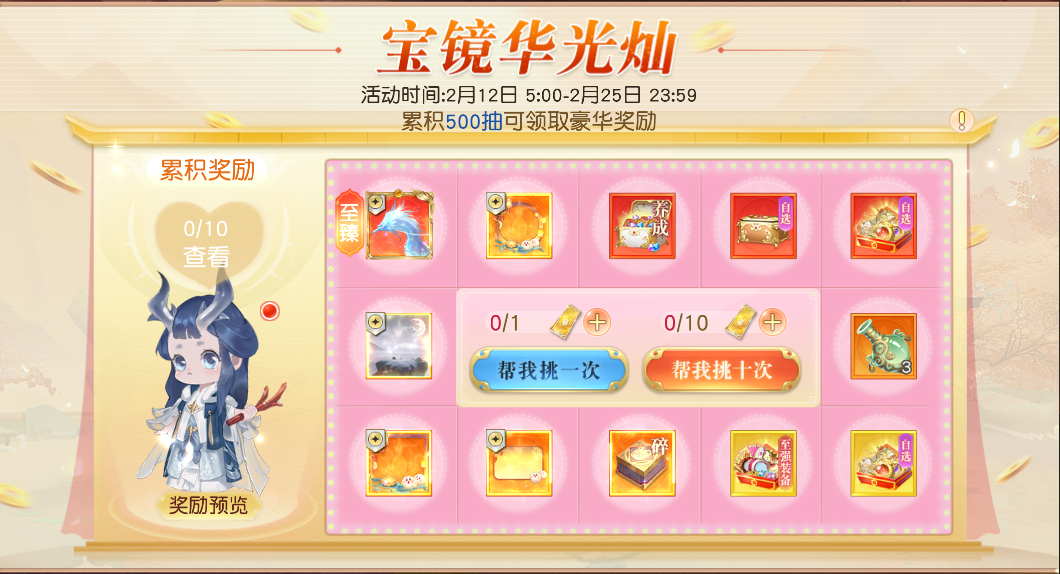 1、元宵活动限定好礼,使用宝镜令抽取精美好礼。
