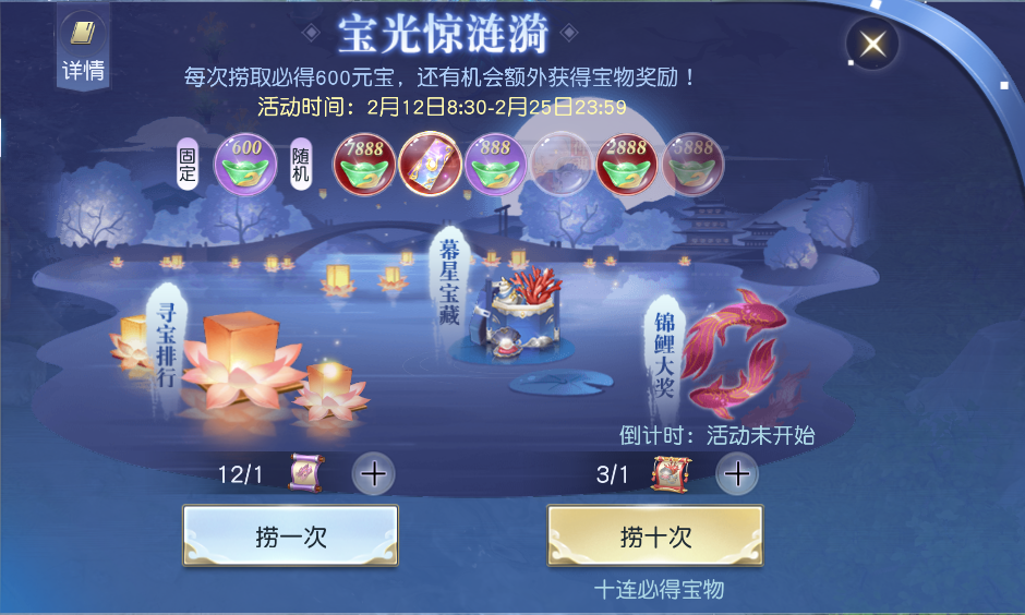 4.锦鲤大奖和寻宝排行将在2月18日的21:00重置,请各位天命者留意时间哦~
