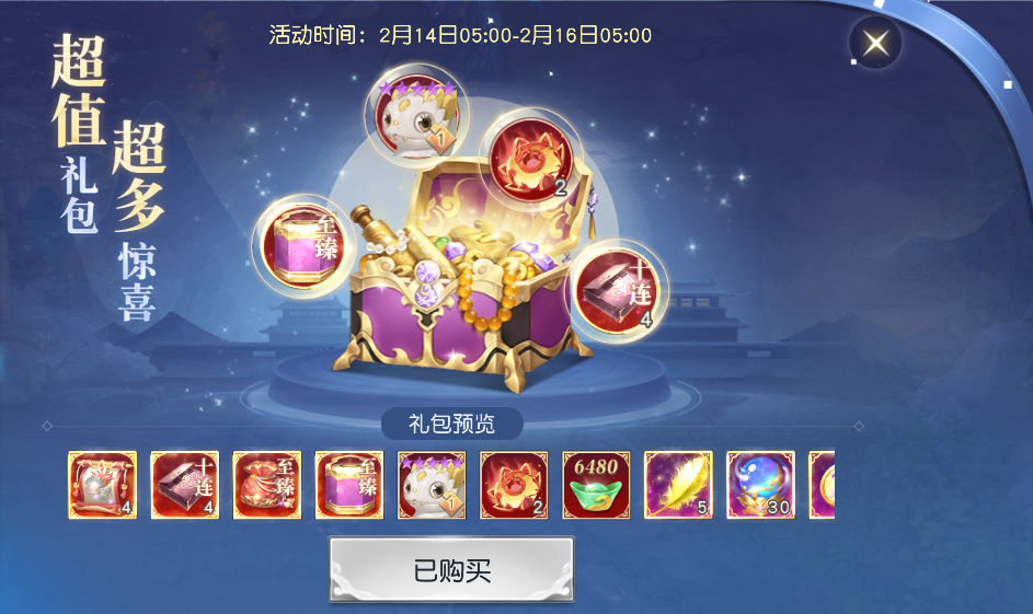 1、活动开启后,溢福财喜礼可购买次数增加一次(最多累计1次)。