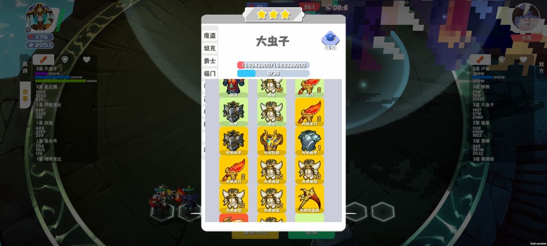 开局最好在2-3刷出七福,其中选择大虫子和一个机甲带上羁绊,注意除了大虫子其他为一星,防止跟大虫子k头,之后为七机甲,选择泰坦和吸血刀的武器强化,之后装备尽量选这个,神器选飞升,禁忌。大概4-6前可以七机甲,在来十钢,中间可以刷个爵士,选择可以加永久血量,没有就不用。大概7-6之前运气好可以出十钢。之后可以选坦克羁绊。