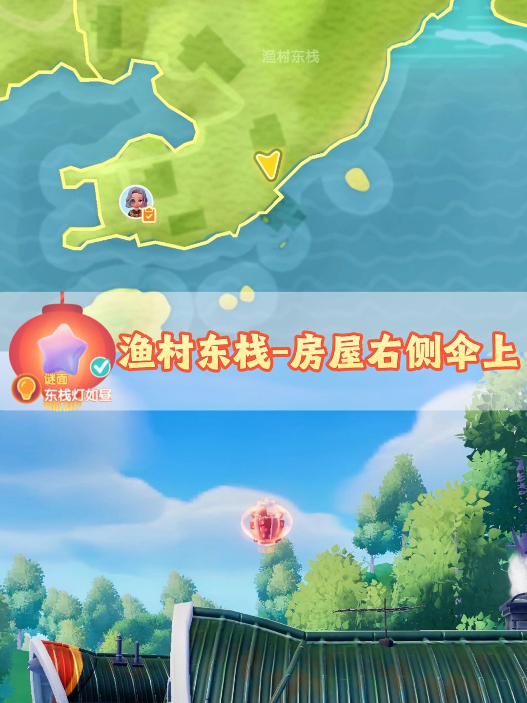 6️⃣东栈灯如昼:渔村东栈-遮阳伞上方(满愿星*15)