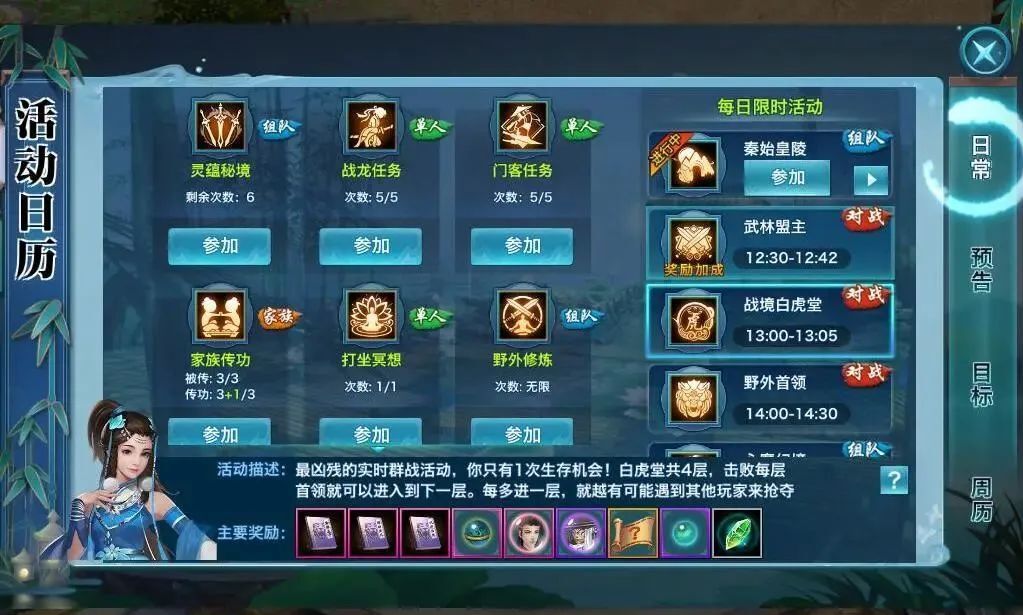 开放范围:正式服兵马未动,粮草先行。山河战境S11[逐鹿西楚]即将开放多个战境系列活动,助力少侠快速成长,获取更多的战功战阶!