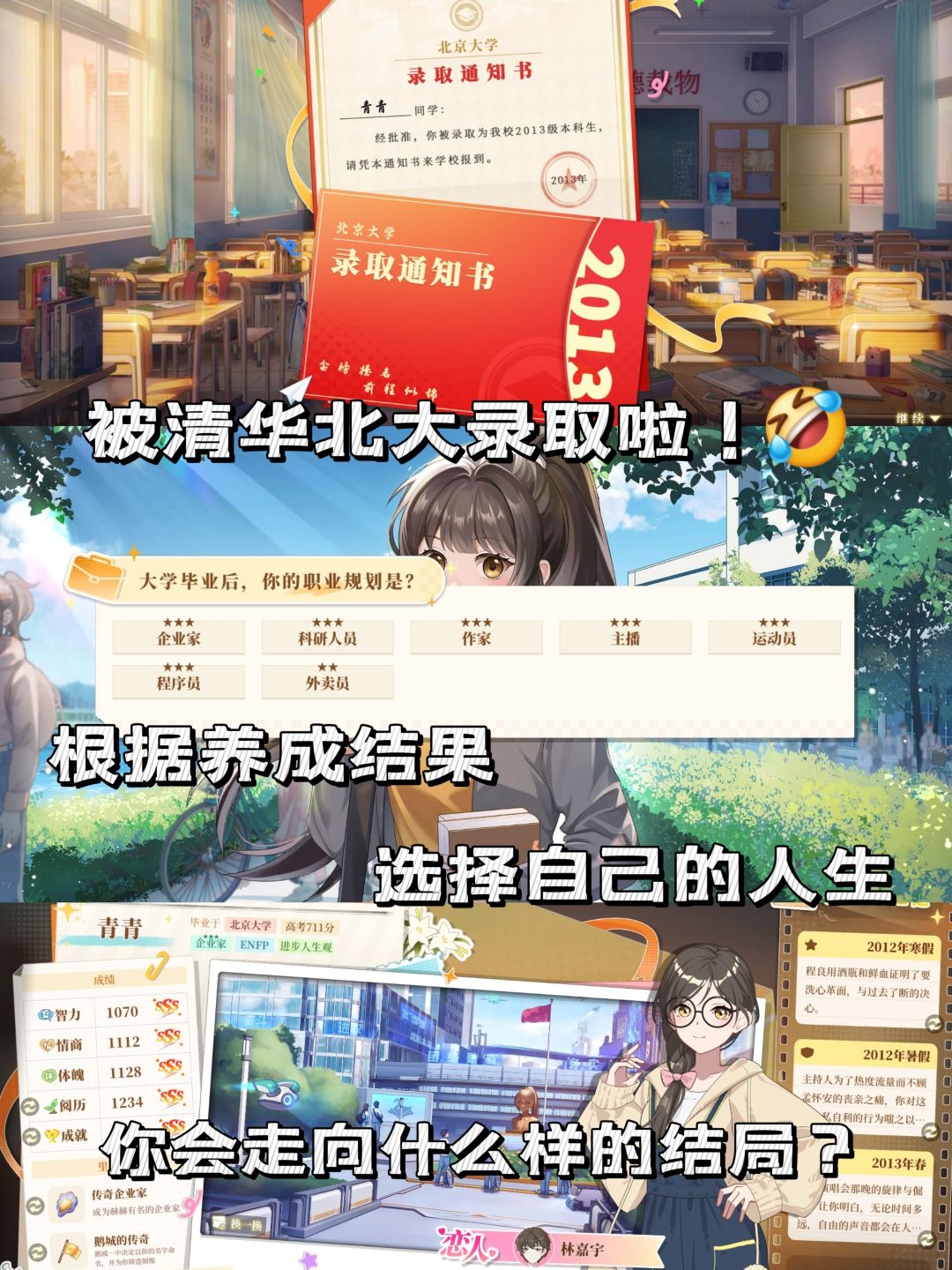 2️⃣《学生时代》可以选择不同性别开场,而且性别的设定不只是换了个皮,游戏认真做了适配男女角色的剧情,主角的不同性别下,剧情发展、沟通方式、随机事件都不一样。