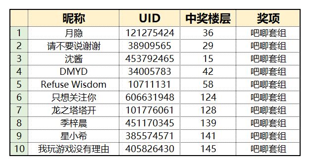 开奖咯!本次活动获奖名单如下: