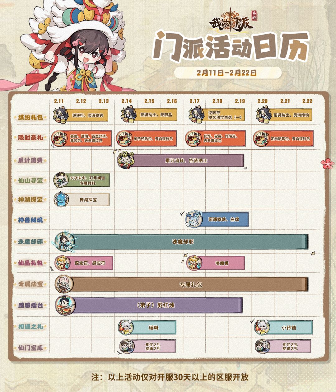 「门派活动日历」2月11日—2月22日