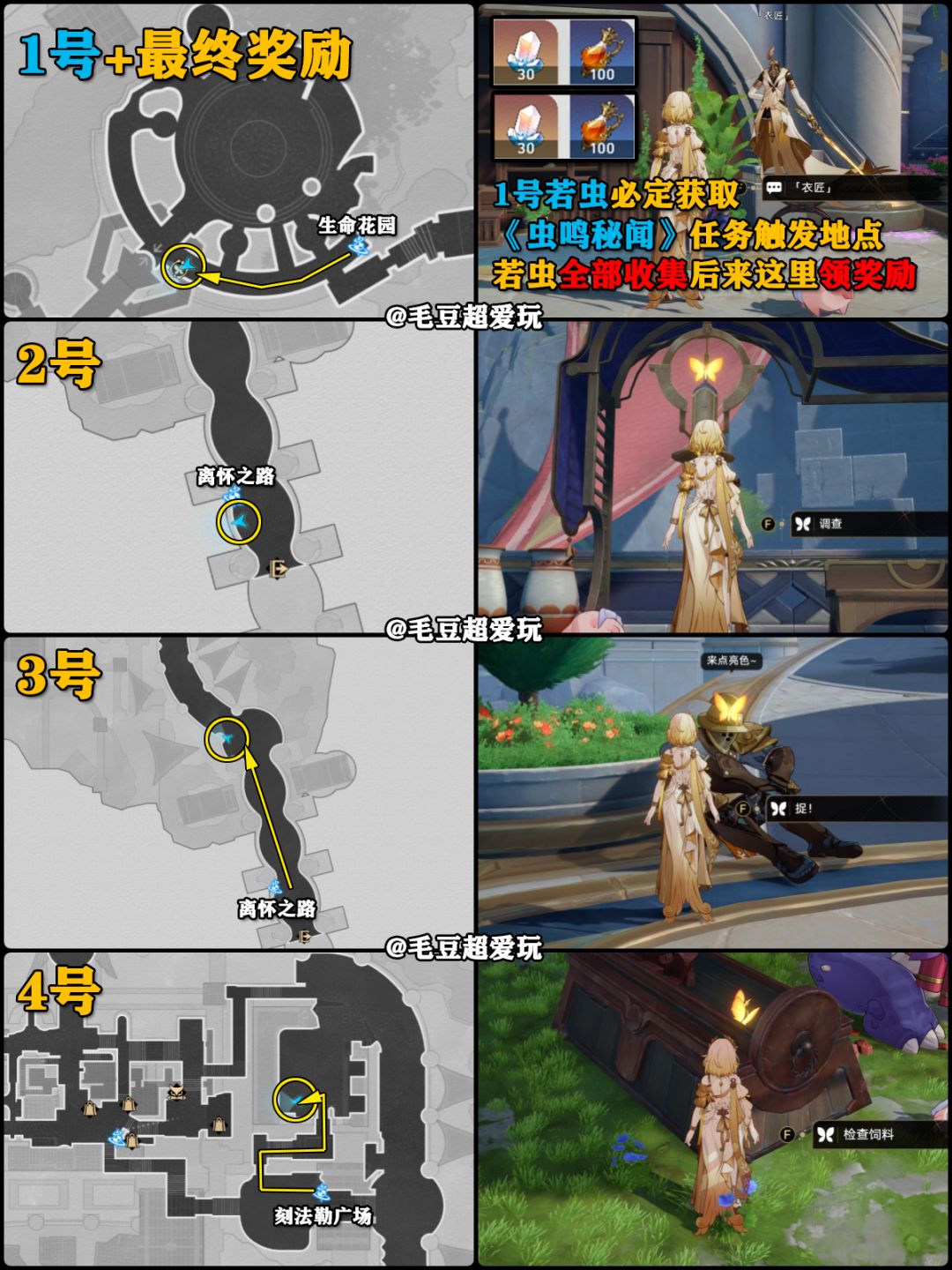 1号若虫进行任务《虫鸣秘闻》时必定获取,如果目标点位没有可交互的若虫则代表已经获取。