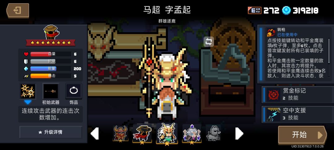 基本上走位不错,随便用这个人物就能通关,输出极其爆表,【和平金鹰】子弹自带穿透效果,有效覆盖战场,只要杀的快,生存没压力。