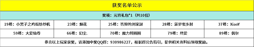 -------------------------------------------------------------(中奖名单)--------------------------------------------------------