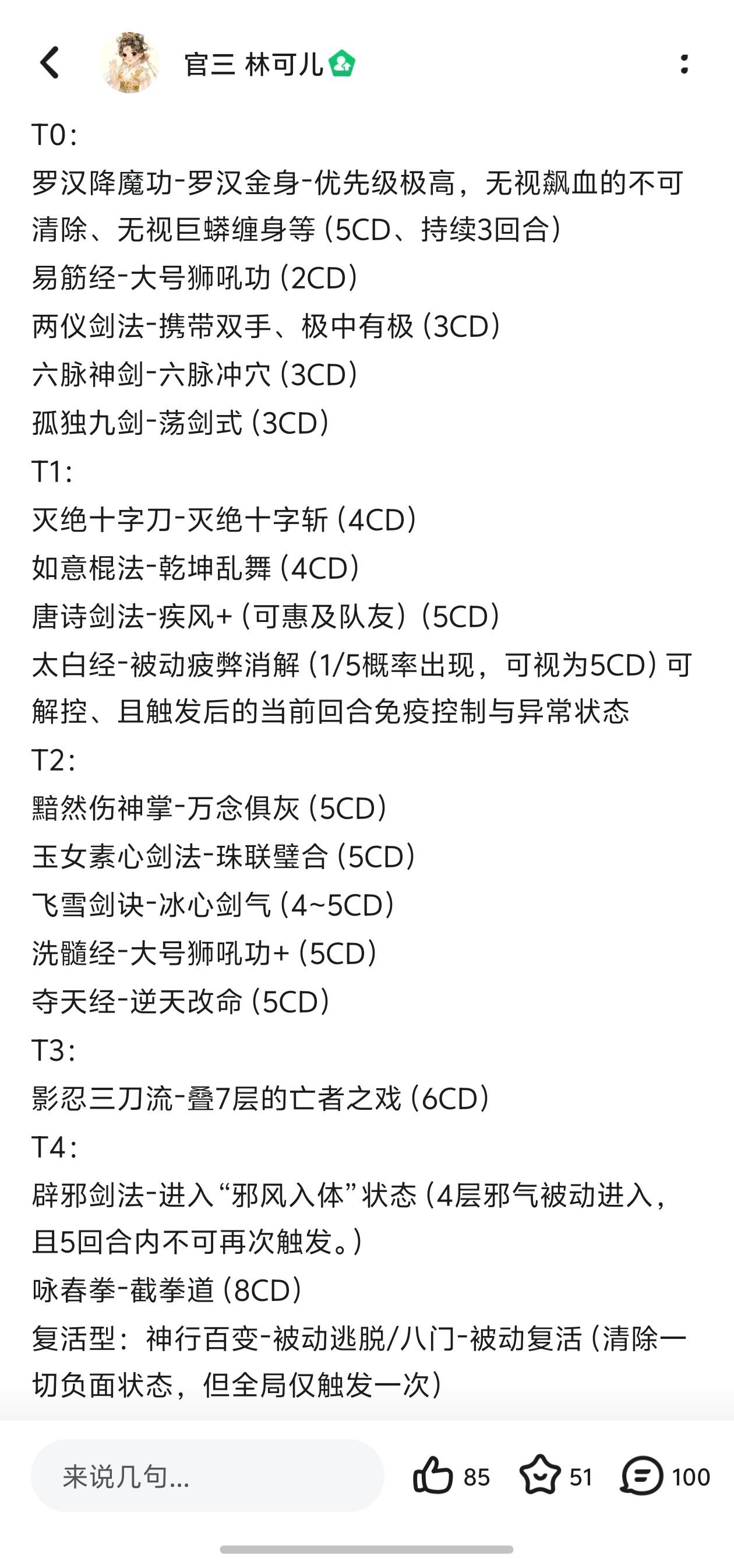 ⑧在未被克制的情况下发挥极佳,越级战斗轻轻松松,在被克制的情况下仍有一战之力:罗汉和洗髓能够清除毒层,但千蛛叠毒的速度很快,口诀拉满一回合就能叠七层,面对双清可以用蚀骨掌吃保底毒伤。⑨虽是近战武学却不怕蛤蟆,武学免费、内功免费,可谓是平民之光。