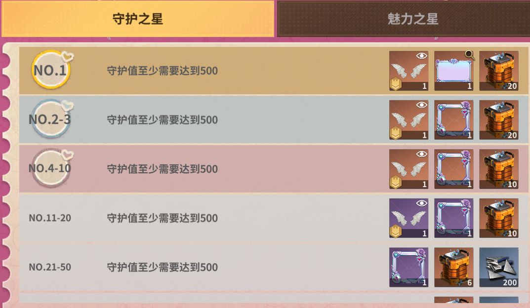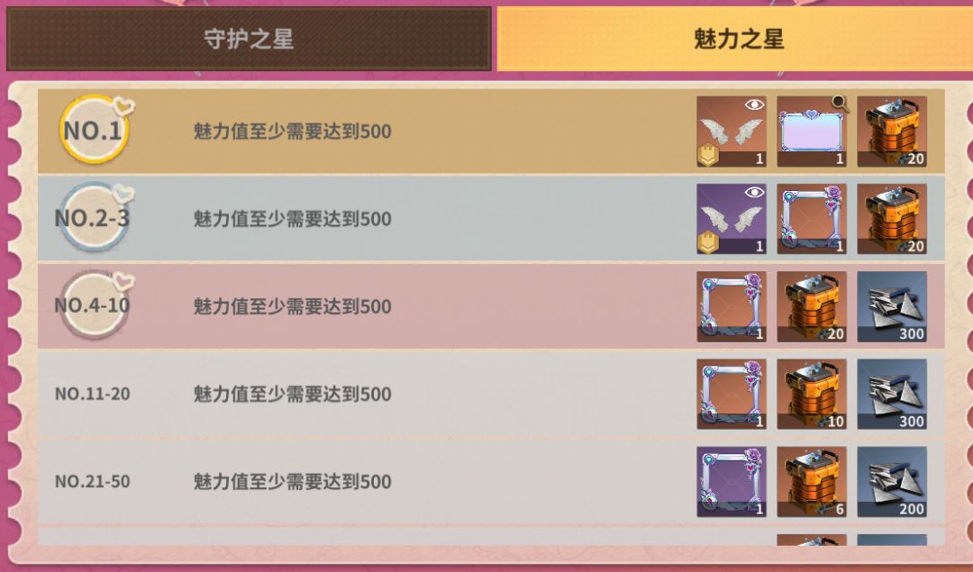 此活动为跨大区活动,分为守护榜和魅力榜,道具为)