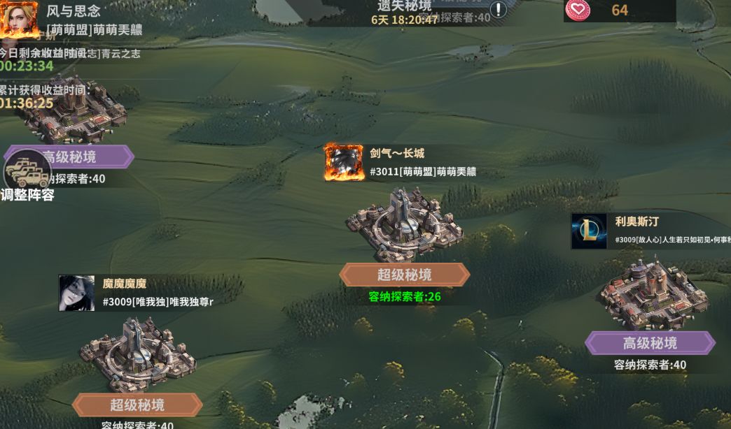 1.秘境共持续七天,为挂机玩法,每天收益时间两小时,每人有3次秘境抢夺机会。