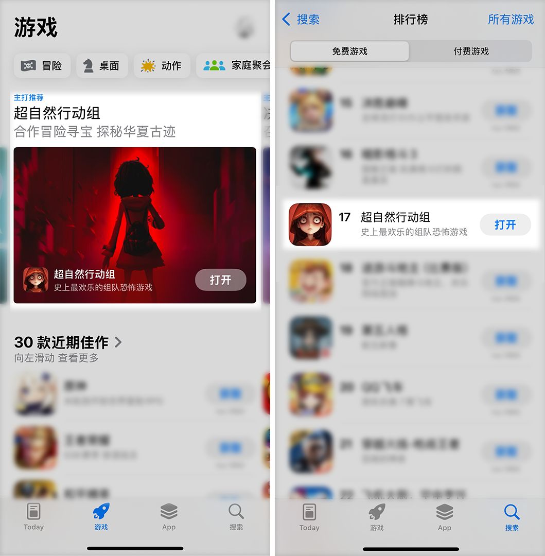 给大家分享一个好消息,很荣幸我们被苹果商店推荐啦,而且在大家的支持下,《超自然行动组》竟然直接冲进了游戏榜前 20名,这比我们想象的可高出太多了!