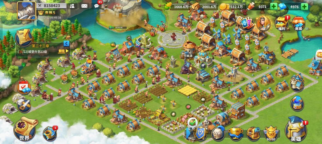 这个游戏的物资除了奖励领取商店换取,最主要的就是自己的领地产出,而这个游戏领地布局需要考虑多方面因素,比如住宅离工作工坊(伐木场农场金矿等)的距离,工坊离仓库的距离,工坊离工作目标的距离(伐木场)