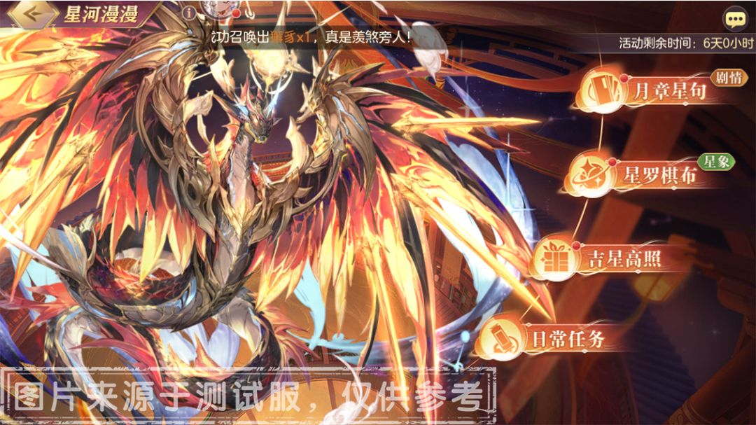 掎摭星宿行千山,梦醒前尘过故关。——全新活动 “星河漫漫”即将上线。本次活动为首只无双灵宠限定活动,后续将不会重复开放。请各位小将军莫要错过哦~
