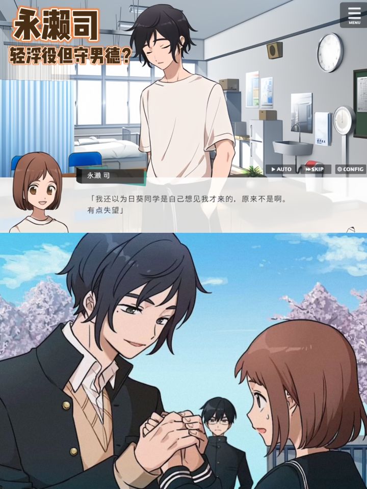 一款甜甜的短篇乙女游戏!作为转校生的田村日葵,你误打误撞来到全黑发校园,邂逅三位各具魅力的男神,开启一场清新又纯爱的恋爱之旅~💖