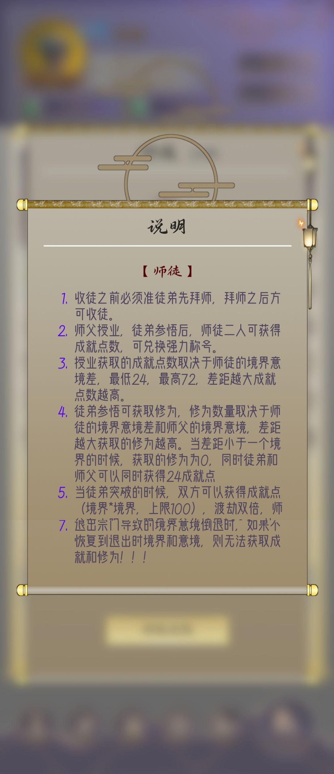 ❶授业获取经验➕成就点【完成授业,会获得大量经验值和成就点,师徒等级差越大收益越大】