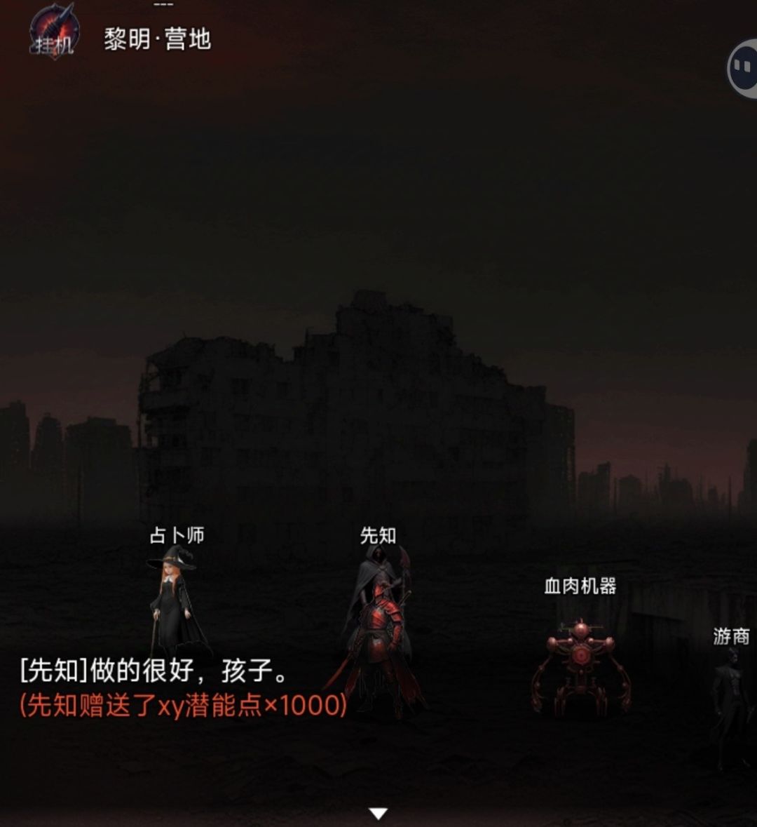挂变异老鼠升级→20+防御,吃药磨死狂暴熊→交先知任务,共1400潜能,初始营地商人800潜能换基因锁(全属性10)→继续挂机升到8级,完成解救工程师1000潜能任务→兑换白色血统并穿戴→挂1个头骨(狂暴熊)和30燃料(蔷薇黑猫)修车解锁图二→叠防御(≥50防御可无伤)磨初始营地光点支线任务一,攒够3000潜能换取绿色血统
