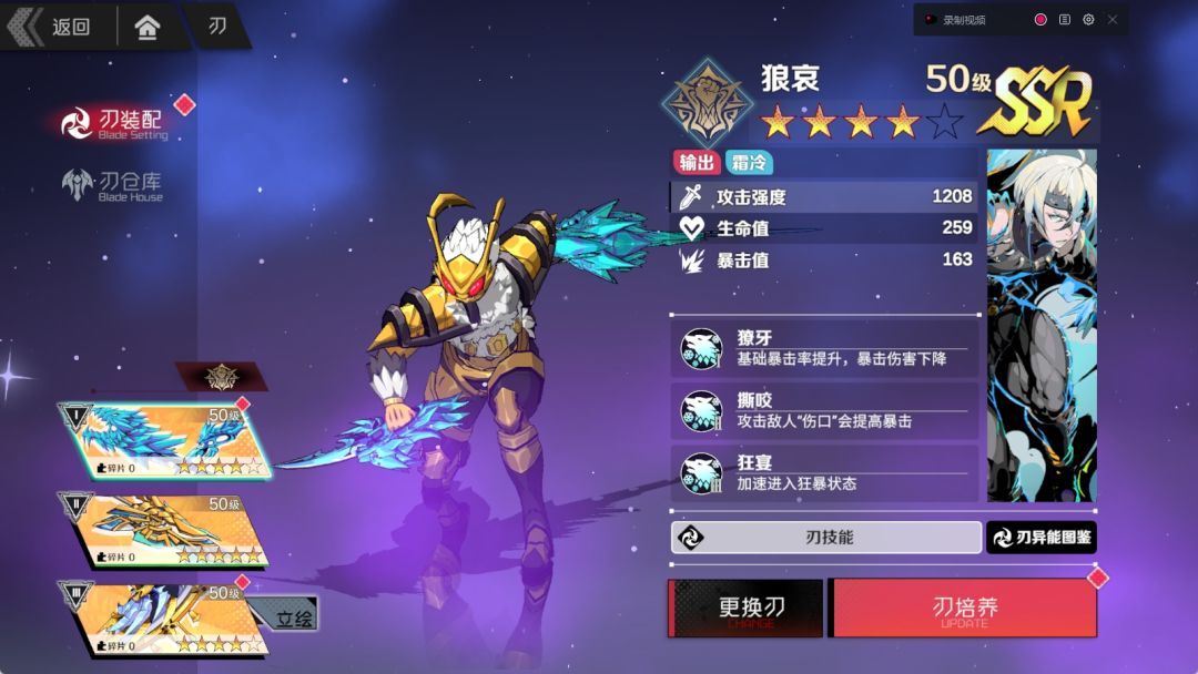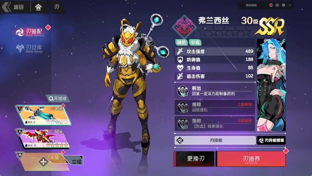 辅助刃:绯雨、针管、炽吻、灵柩。