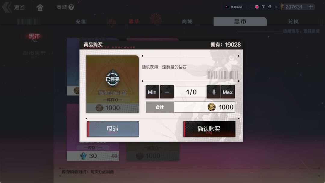 商店黑市每日金币购买钻石